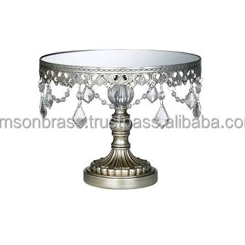 คริสตัลตกแต่งแขวนโต๊ะรอบเงินยืนเค้กตกแต่งงานแต่งงานตารางหรูหราคริสตัลแขวนยืนเค้ก