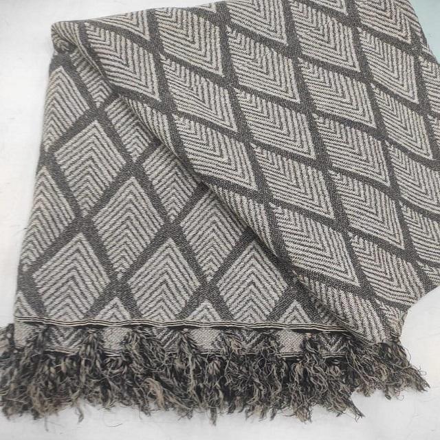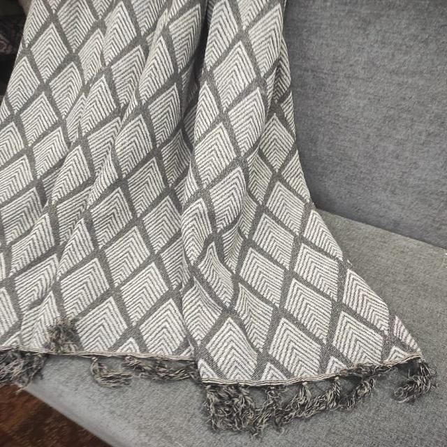 ผ้าห่มโพลีเอสเตอร์ผ้าฝ้ายนุ่มสำหรับตกแต่งบ้านพร้อมด้ายลายตารางและพู่สำหรับผู้ใหญ่