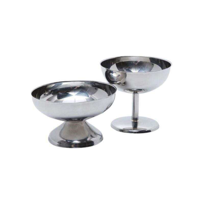 ชามไอศกรีมสแตนเลสตกแต่งพร้อมช้อน จานขนมหวานโลหะ