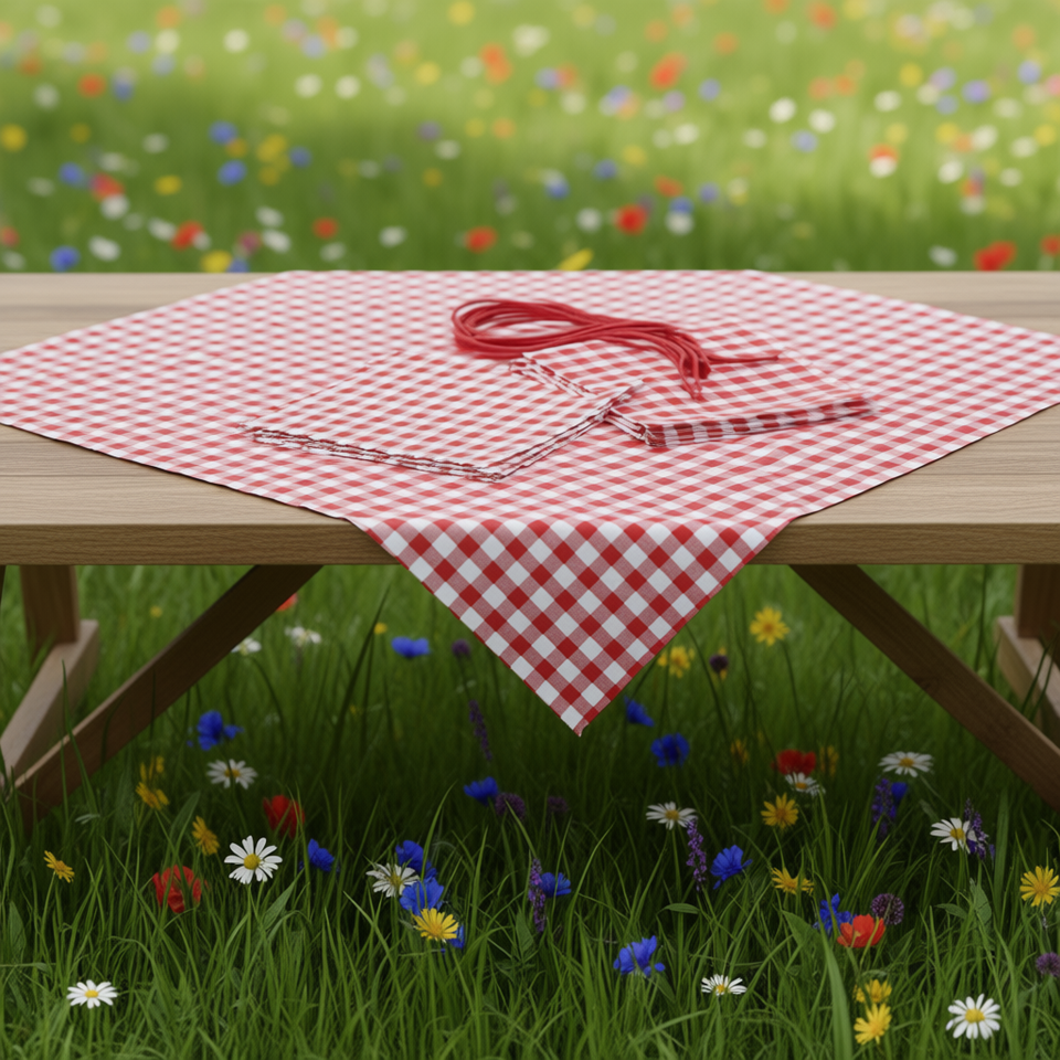 ผ้าปูโต๊ะลายตารางสีแดง 6 ชิ้นสำหรับตกแต่งโต๊ะ