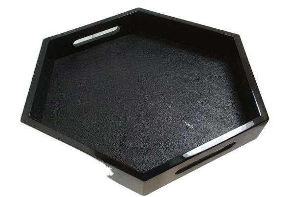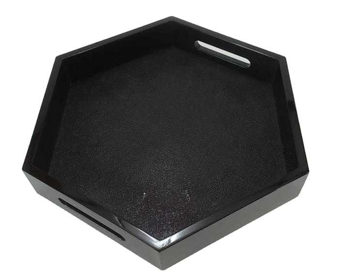 ถาดหกเหลี่ยมลายหนังแกะเทียมตกแต่ง พร้อมเคลือบเอนเคอสติก ทำด้วยมือ 100% คุณภาพระดับพาณิชย์ สำหรับชาและกาแฟ จากเวียดนาม