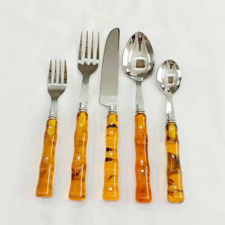 ชุดเครื่องใช้บนโต๊ะอาหารสำหรับตกแต่งพร้อมที่จับทำจากเรซินสำหรับงานแต่งงานชุดช้อนและส้อมกระจกสีเงินแบบเกาหลี