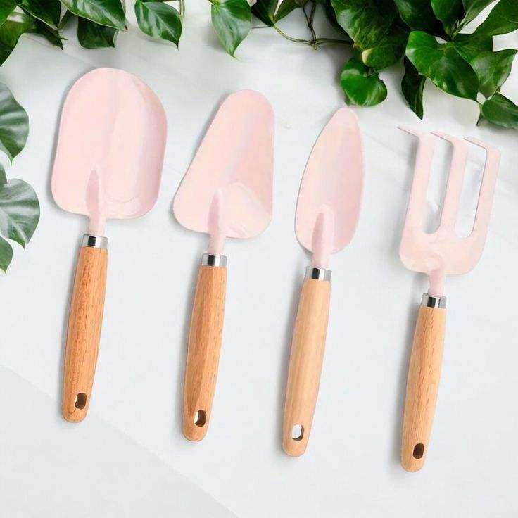 ชุดเครื่องมือทำสวนลายดอกไม้ตกแต่งพร้อมด้ามไม้ พลั่ว จอบ สำหรับดูแลต้นไม้ในบ้าน