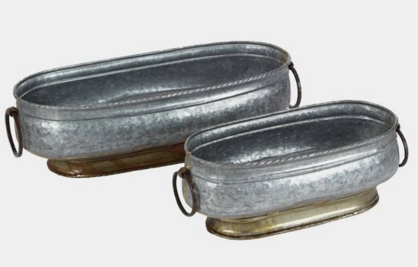 ชุดกระถางต้นไม้สำหรับตกแต่ง2ชิ้นสำหรับบ้านสวนกระถางตกแต่งการออกแบบที่ทันสมัยเหล็กชุบสังกะสีชาวไร่เหล็ก S