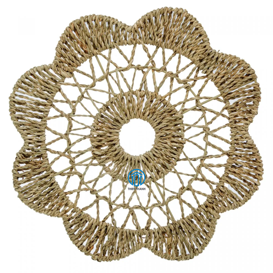 ดอกไม้ตกแต่งหญ้าทะเล Boho ไม้หวายตกแต่งโต๊ะทอ Placemat รอบเสื่อโต๊ะธรรมชาติในเวียดนาม