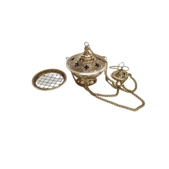 เตา bakhoor ทองเหลืองเต็มรูปแบบตกแต่งด้วยฝาทองเหลืองที่ทันสมัยช่วยให้สามารถกระจายธูปและหรูหรา
