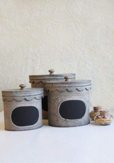 ชุดกระป๋องชุบสังกะสีตกแต่งพร้อมเชือกเน้นและป้ายแบบชนบทเพิ่มสไตล์ห้องครัวในขณะที่เพิ่มการจัดเก็บ