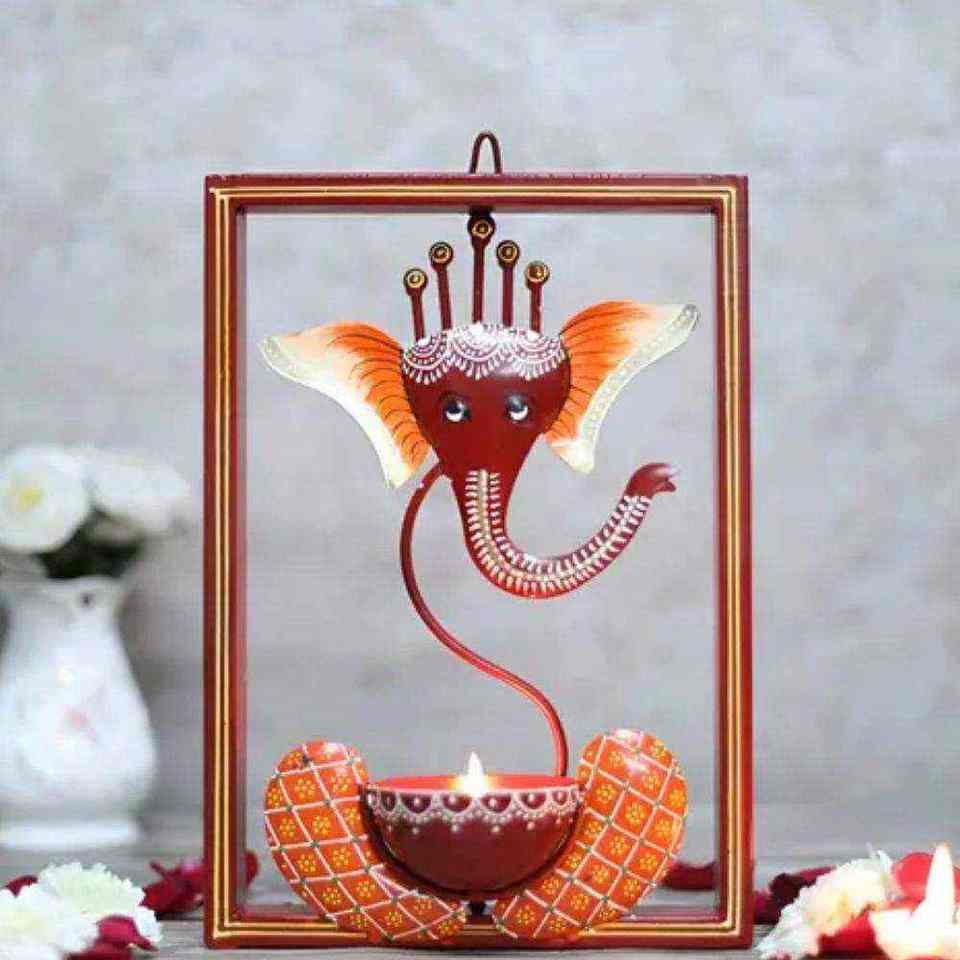 ที่วางเทียนรูปพระพิฆเนศสำหรับตกแต่งผนัง คุณภาพพรีเมียม เหมาะสำหรับเทศกาลดีวาลี พิธีกรรมประจำวัน ของตกแต่งบ้าน และของขวัญ ผลิตจากโรงงานโดยตรง