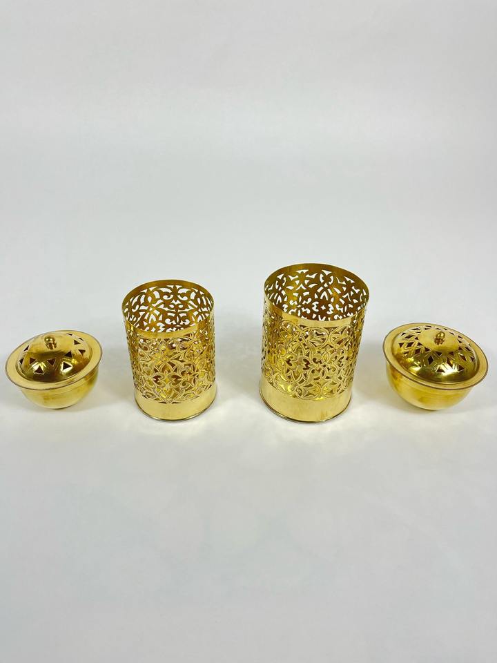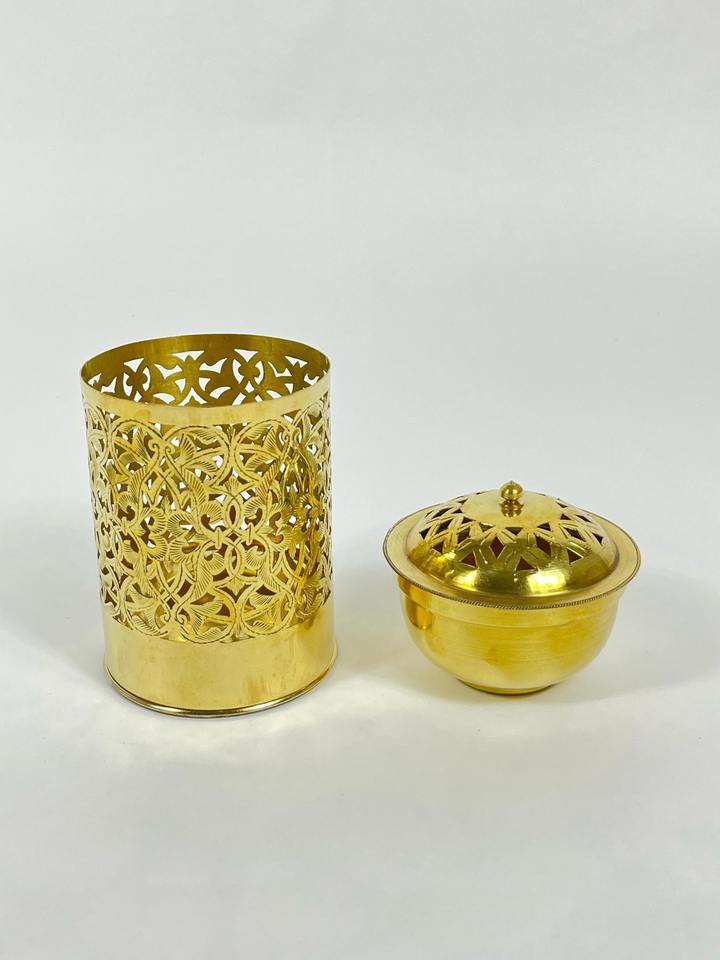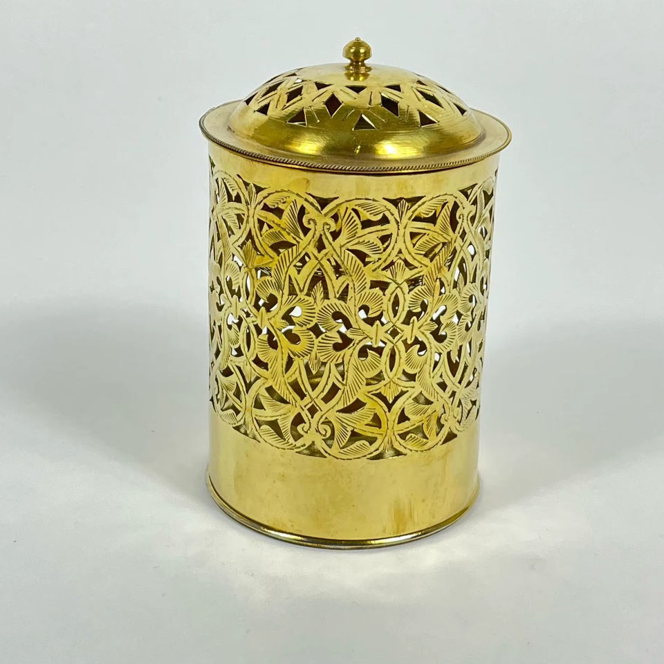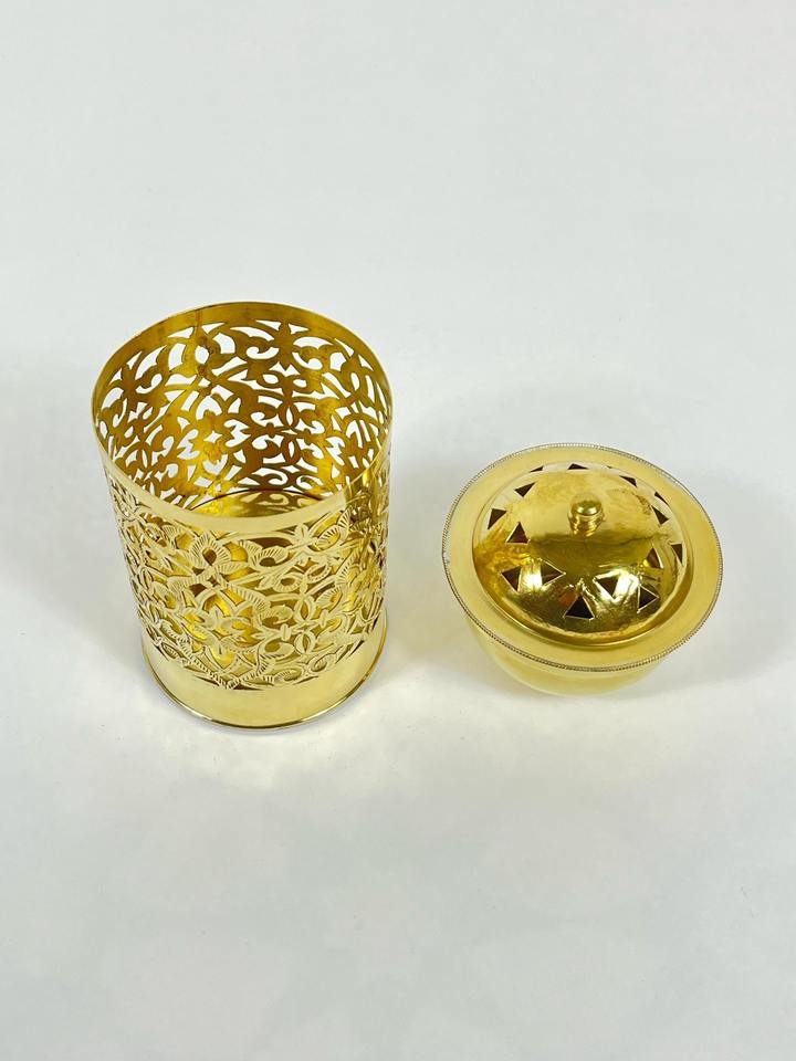 ถังขยะตกแต่งลายฉลุสีทอง งานฝีมือหรูหรา สำหรับใช้ในบ้าน ห้องน้ำ ห้องนอน สำนักงาน งานพิเศษ และเป็นของขวัญ จากอินเดีย