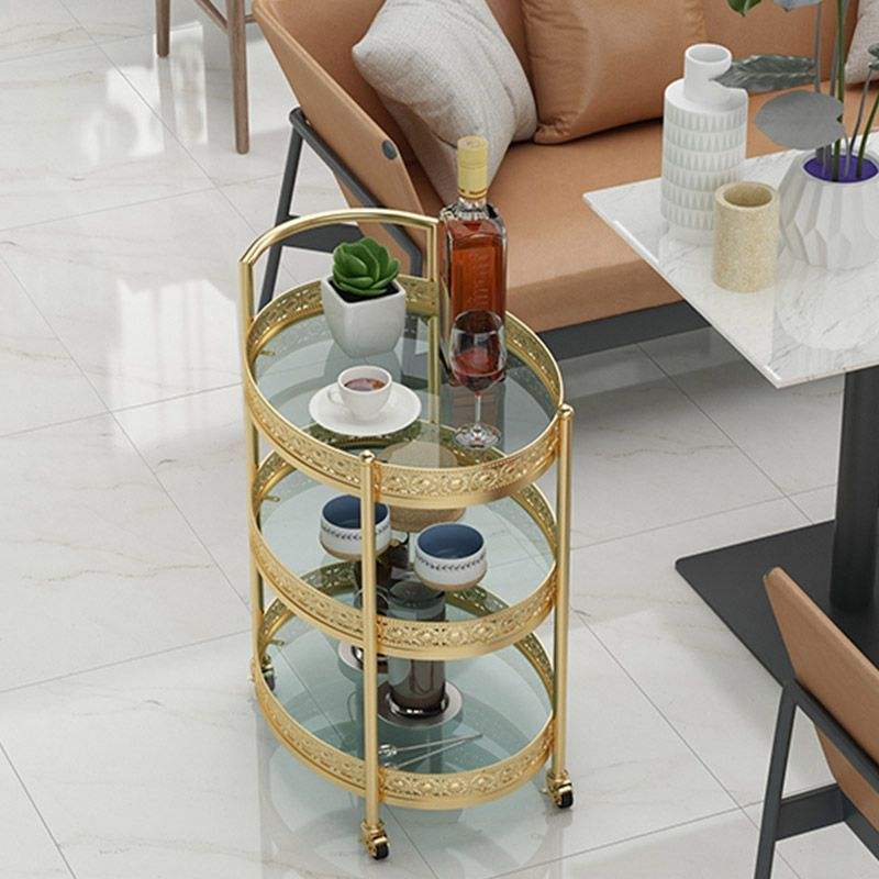 รถเข็นบาร์เหล็กเคลือบทองตกแต่ง พร้อมชั้นวางกระจก สำหรับใช้ในบ้าน บาร์ ครัว ห้องรับประทานอาหาร ตกแต่งบ้านและโรงแรม