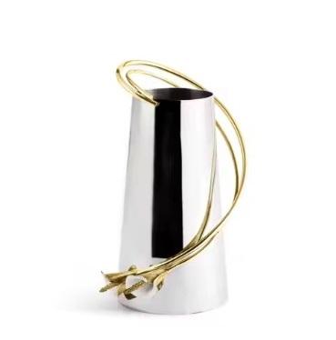 แจกันดอกไม้ทำจากโลหะตกแต่งบนโต๊ะสีทองทันสมัยแจกันวางบนพื้นตรงกลางของตกแต่งด้านบนได้รับความนิยมสูง