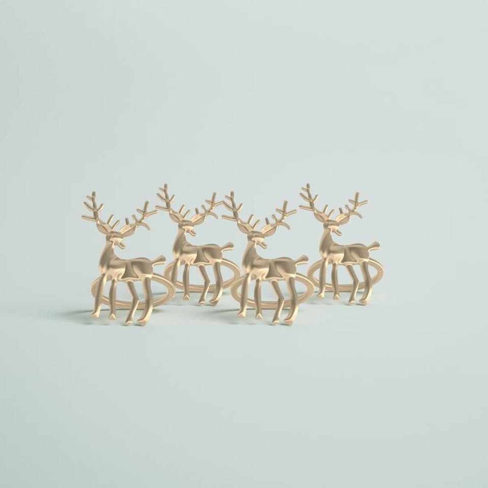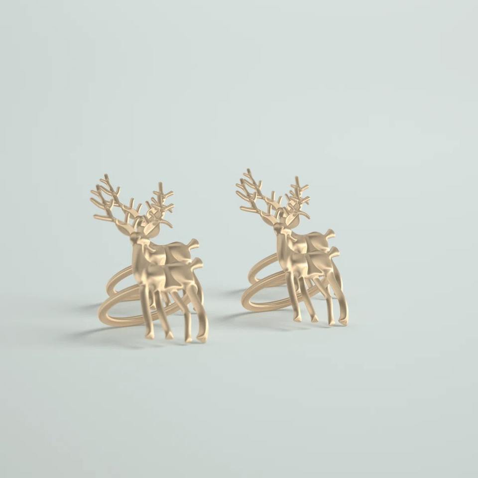 แหวนผ้าเช็ดปากรูปกวางเรนเดียร์เคลือบทองตกแต่ง เหมาะสำหรับงานคริสต์มาสและการจัดโต๊ะตามฤดูกาล ขายส่งจากอินเดีย