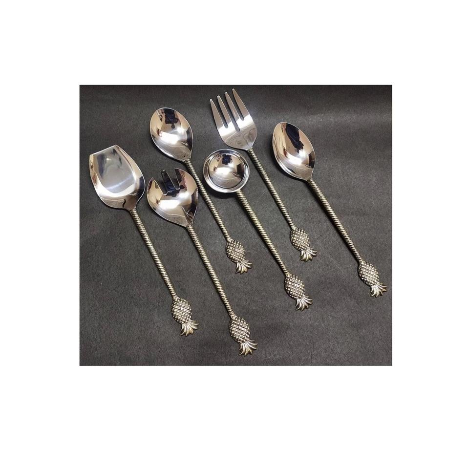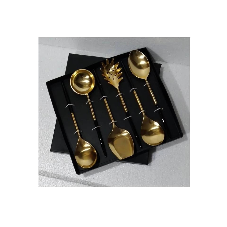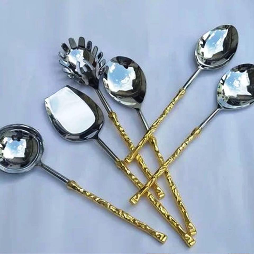 ชุดเซิฟเวอร์สลัดโลหะชุบทองสำหรับตกแต่งช้อนและส้อมทำมือที่หรูหราสำหรับใช้ในบ้านโรงแรมและงานเลี้ยง