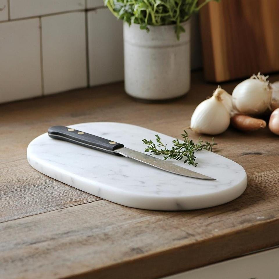 เขียงและตัดหินอ่อนสีเขียวสำหรับตกแต่งพื้นผิวหินกลมและมีเส้นสีขาว