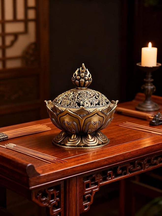เตาเผากำยานโลหะตกแต่งทำมือ สำหรับพิธีกรรมทางศาสนา โยคะ การทำสมาธิ และพื้นที่บำบัดรักษา เป็นมิตรกับสิ่งแวดล้อมและเป็นธรรมชาติ ราคา