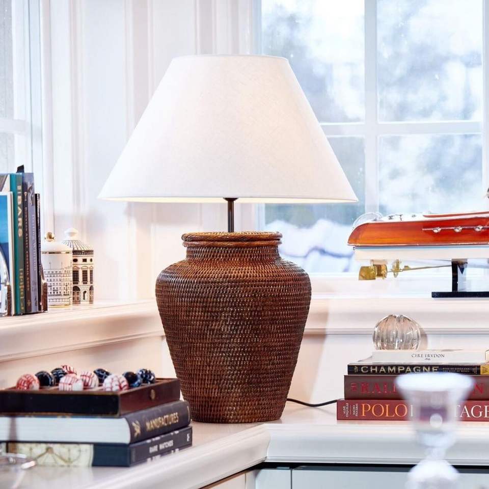โคมไฟตั้งโต๊ะหวายทำมือตกแต่งด้วยการออกแบบที่ทันสมัยเหมาะสำหรับการตกแต่งภายในบ้านไร่แบบชนบทและอพาร์ทเมนต์ที่ทันสมัย