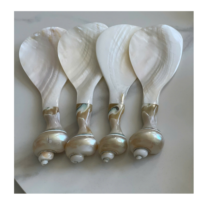 ช้อนเปลือกหอยมุกทำมือสำหรับตกแต่ง พร้อมด้ามจับเปลือกหอยธรรมชาติ สำหรับอุปกรณ์ตกแต่งโต๊ะอาหาร