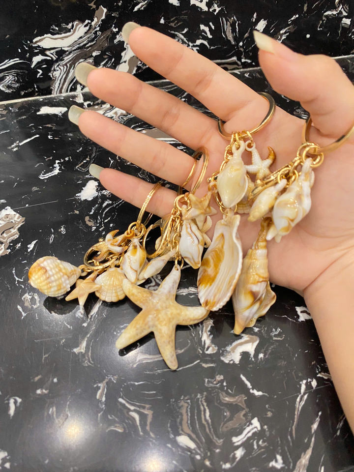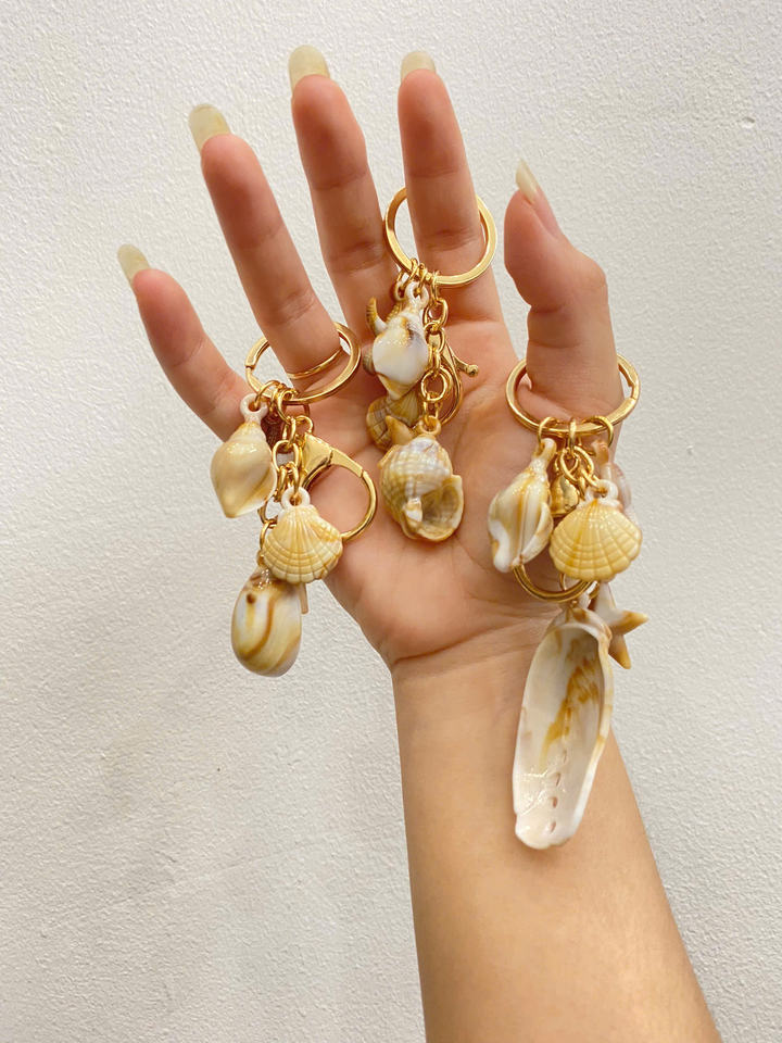 พวงกุญแจเปลือกหอยประดับตกแต่ง ทำด้วยมือ ของที่ระลึกจากชายหาด ของขวัญจากเปลือกหอยธรรมชาติ