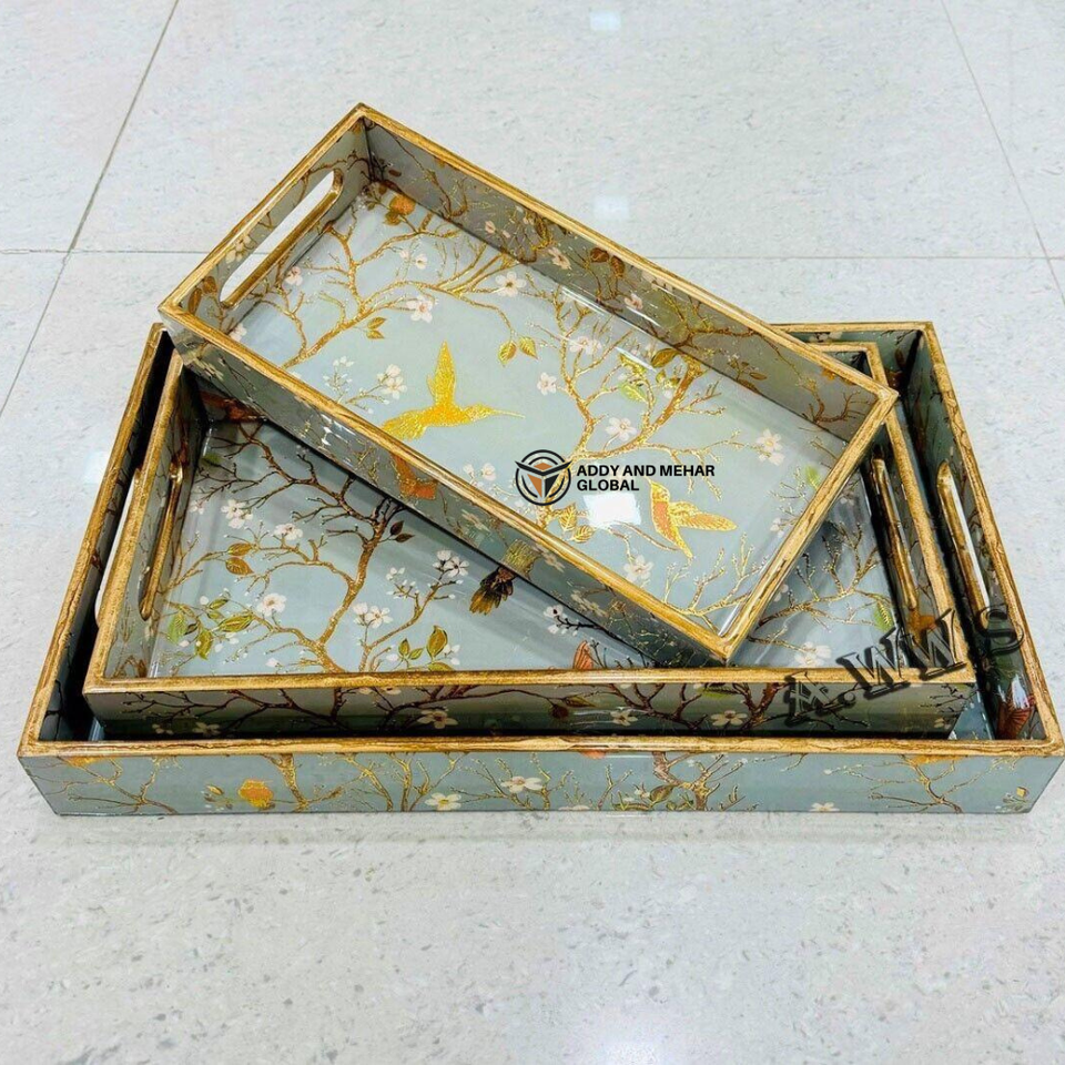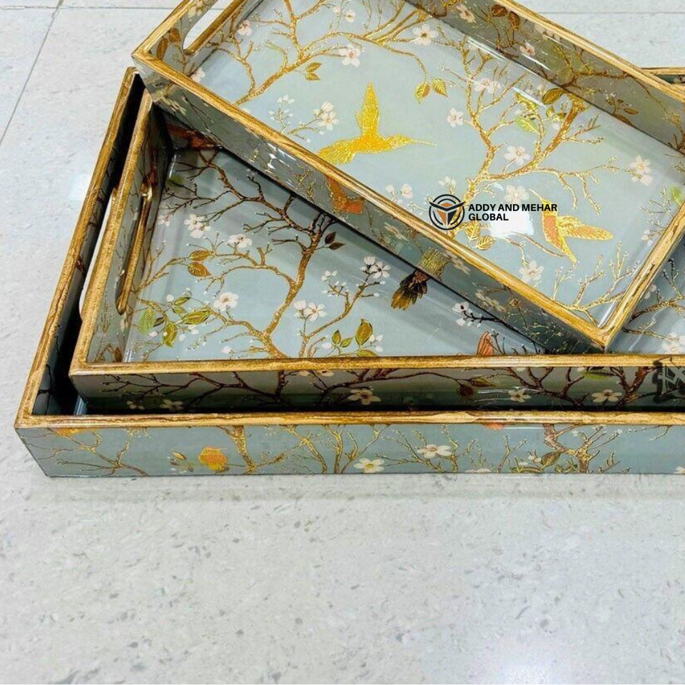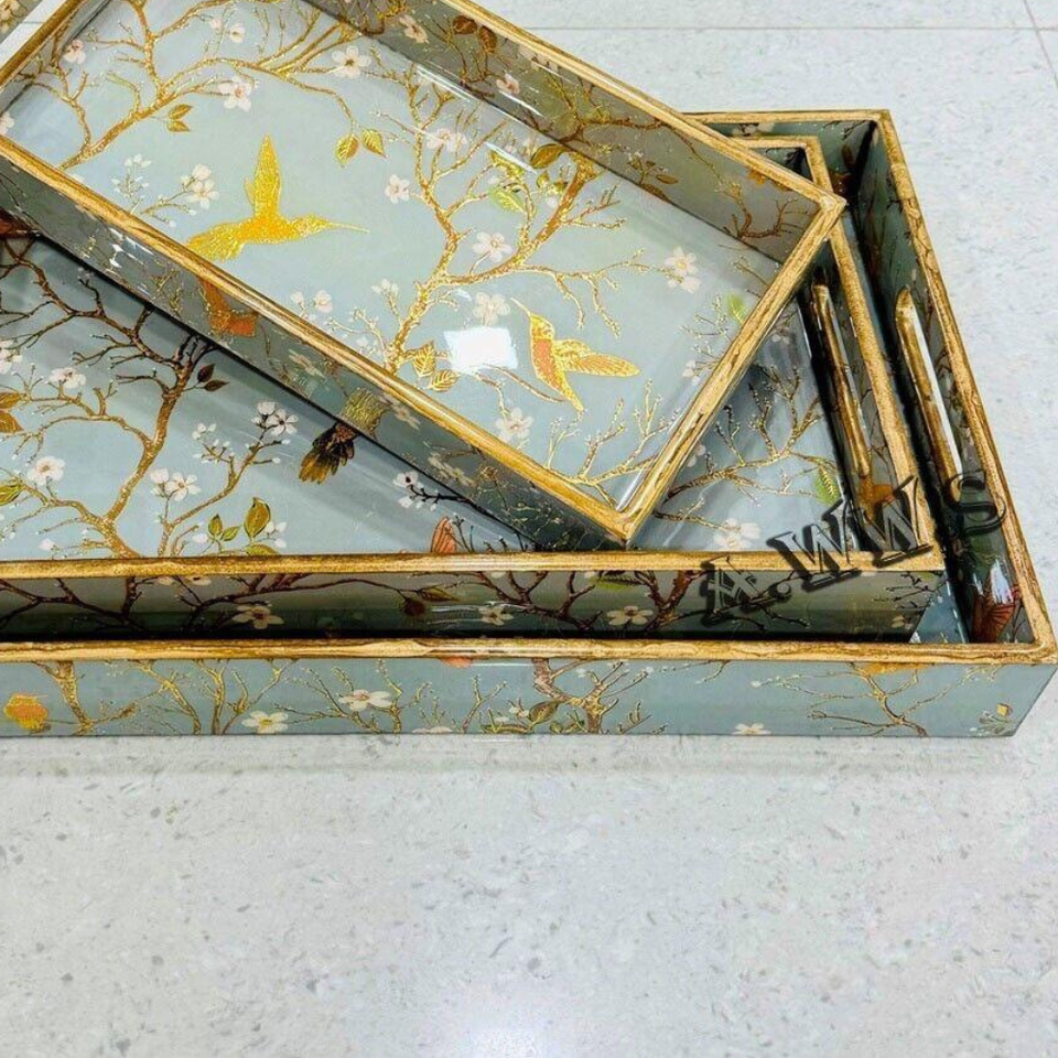 ชุดถาด MDF รูปหกเหลี่ยมตกแต่ง พร้อมเคลือบเงาแบบกระดาษเคลือบเงา ลายดอกไม้และนกสไตล์วินเทจ สำหรับจัดเก็บ