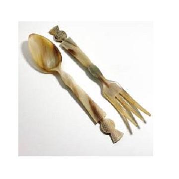 Decorative Horn Spoons and Forks Flatware Cutlery Custom Made Ox Buffalo Horn Dinnerware Cutlery, Including Horn Spoons & Fork