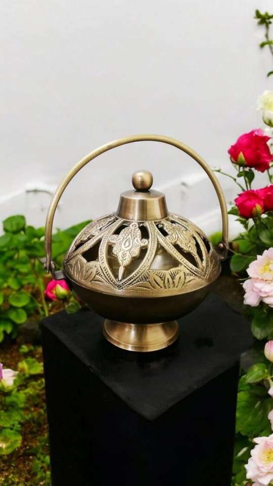 เตาเผาเครื่องหอมบาคูร์ตกแต่ง ทำด้วยมือจากโลหะ สำหรับเทศกาลอีดและรอมฎอน