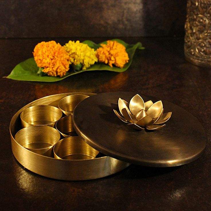 กล่องใส่เครื่องเทศทองเหลืองอินเดียสำหรับเก็บเครื่องเทศแบบดั้งเดิมและตกแต่งครัวบ้าน