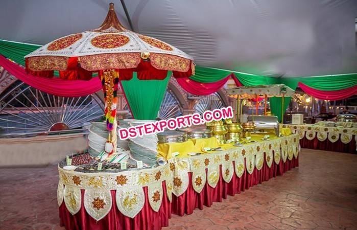 ซุ้มอาหารงานแต่งงานแบบอินเดีย ซุ้มอาหารงานแต่งงานอินเดียพร้อมหลังคา งานเลี้ยงแบบดั้งเดิม ซุ้มเรห์ดีพร้อมหลังคา