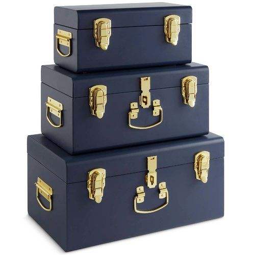กล่องเก็บของโลหะสไตล์อินดัสเทรียลตกแต่งอย่างมีดีไซน์ พร้อมสายรัด จุของได้เยอะ เหมาะสำหรับจัดเก็บเสื้อผ้าในบ้านสมัยใหม่