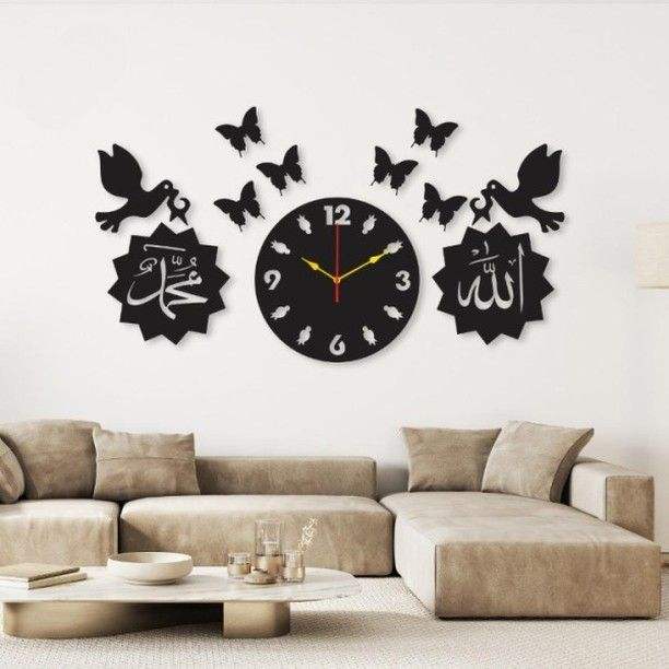 นาฬิกาแขวนผนังเหล็กตกแต่งลายอิสลาม ดีไซน์เชื่อถือศาสนา เหมาะสำหรับตกแต่งผนังห้องละหมาดในบ้าน
