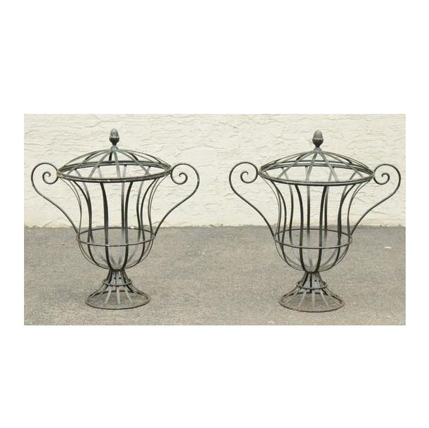 ชุดกระถางต้นไม้ทำจากลวดเหล็กใช้ตกแต่งสวนแบบย้อนยุค2ชิ้น