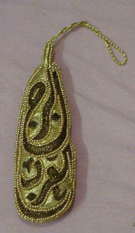 ของตกแต่งที่เย็บปักถักร้อยสีขาวและสีเงิน zari พร้อมลูกปัดรูปดาวที่สวยงามของประดับต้นคริสต์มาสที่แขวนอยู่