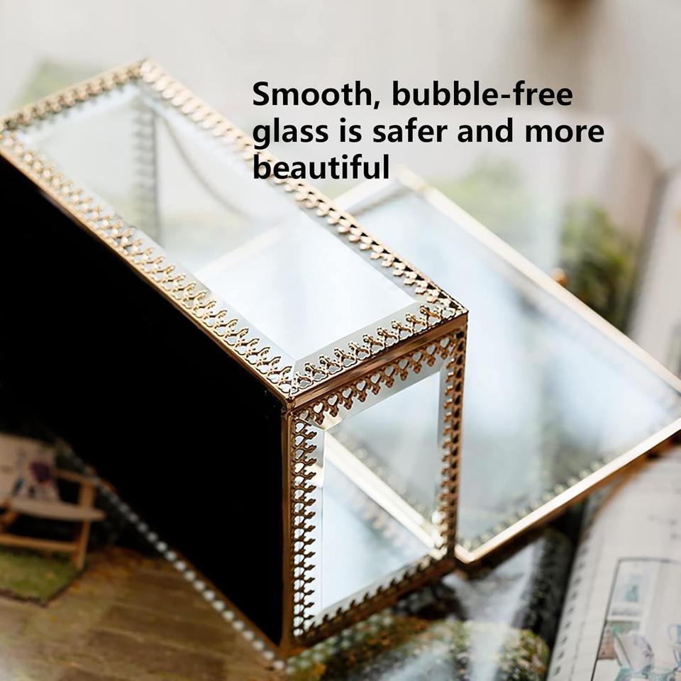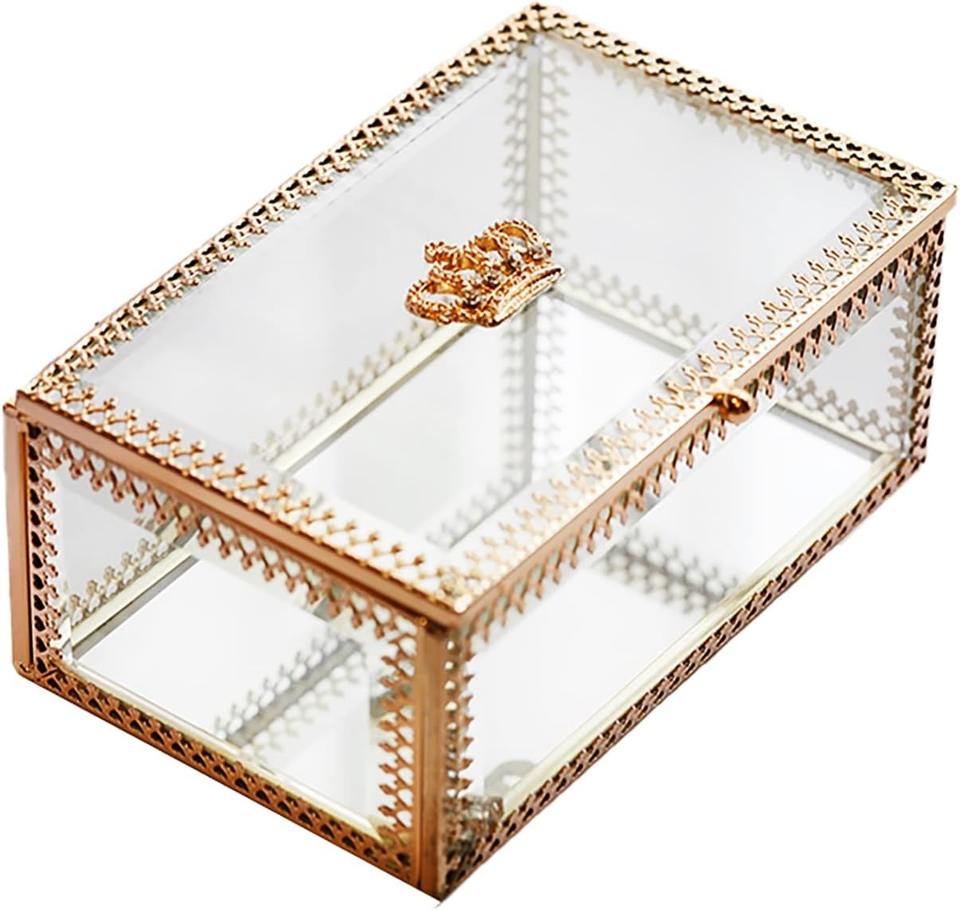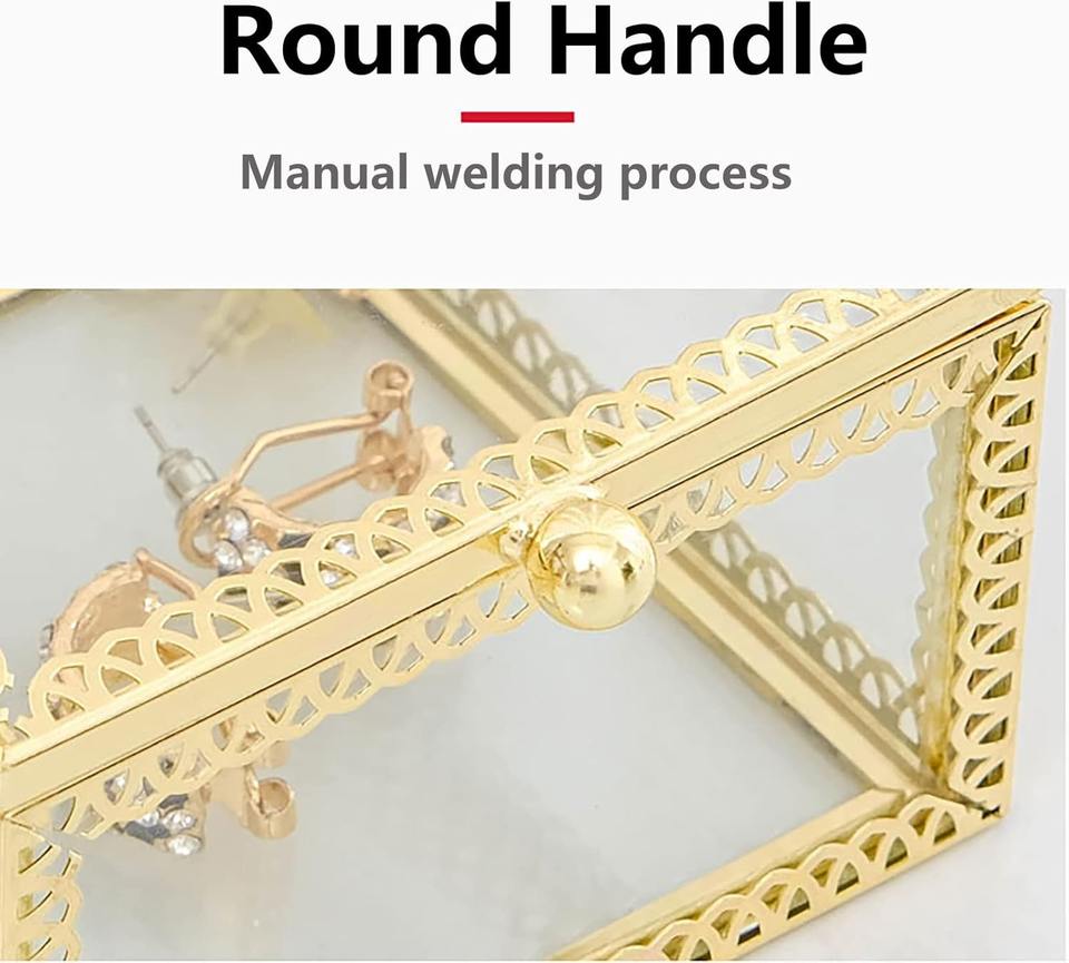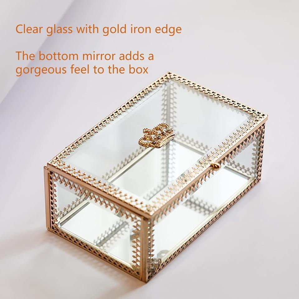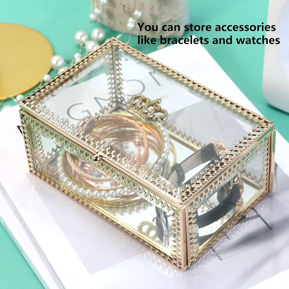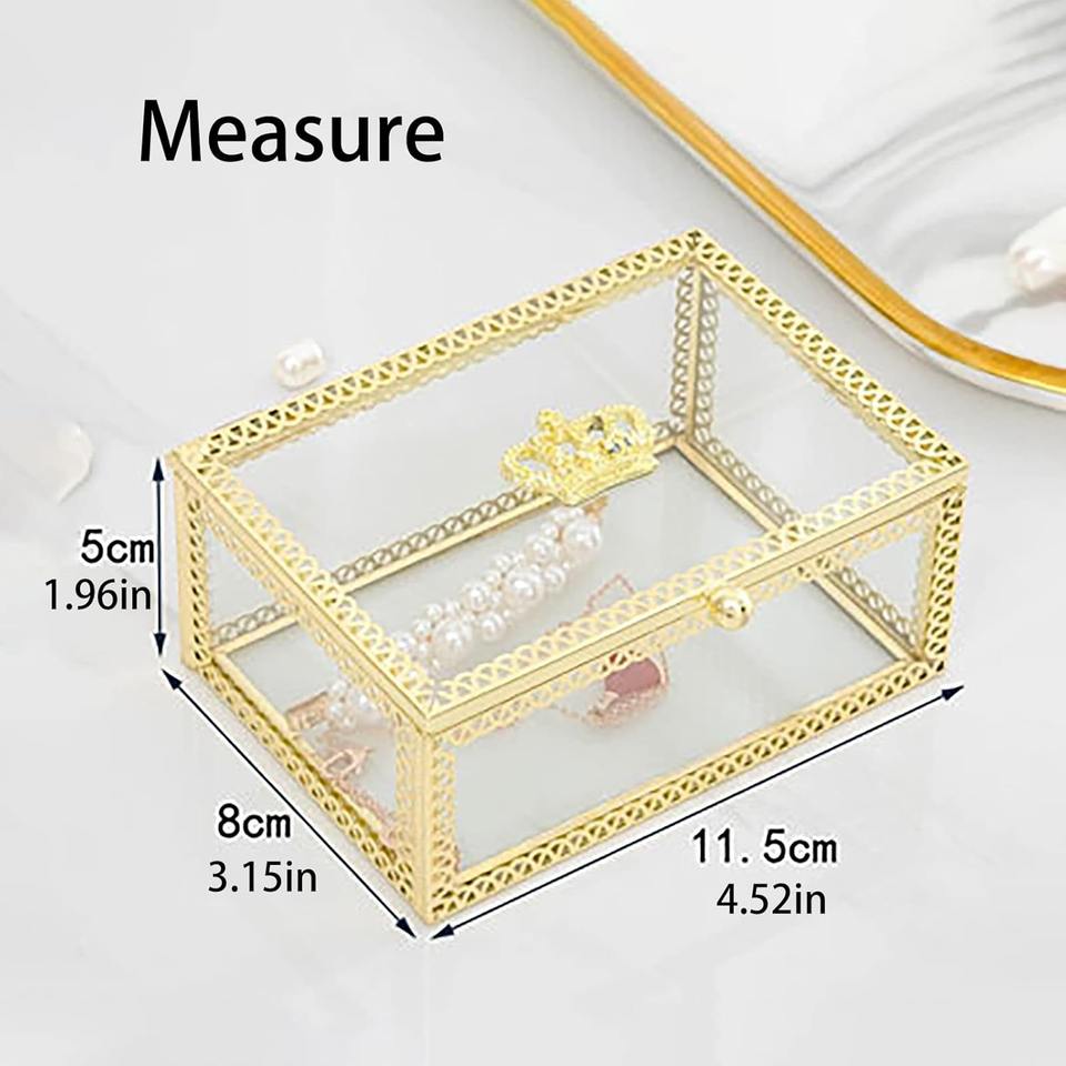 กล่องใส่เครื่องประดับตกแต่ง ฝาแก้ว กรอบโลหะ กล่องเก็บของ กล่องใส่เครื่องประดับแก้วพรีเมียม กล่องของขวัญงานแต่งงาน
