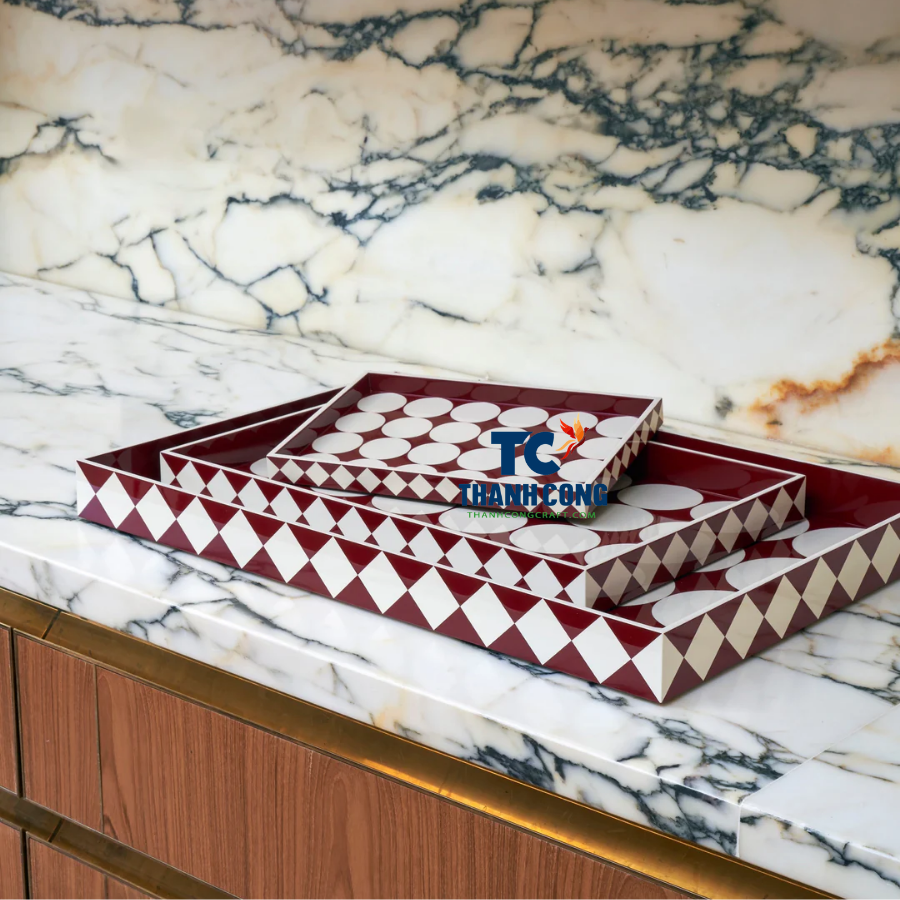 ถาดใส่แลคเกอร์ตกแต่งด้วยพื้นผิวมันวาวหรูหราเหมาะสำหรับห้องนั่งเล่นที่มีถาดตกแต่งแล็คเกอร์สไตล์เวียดนาม