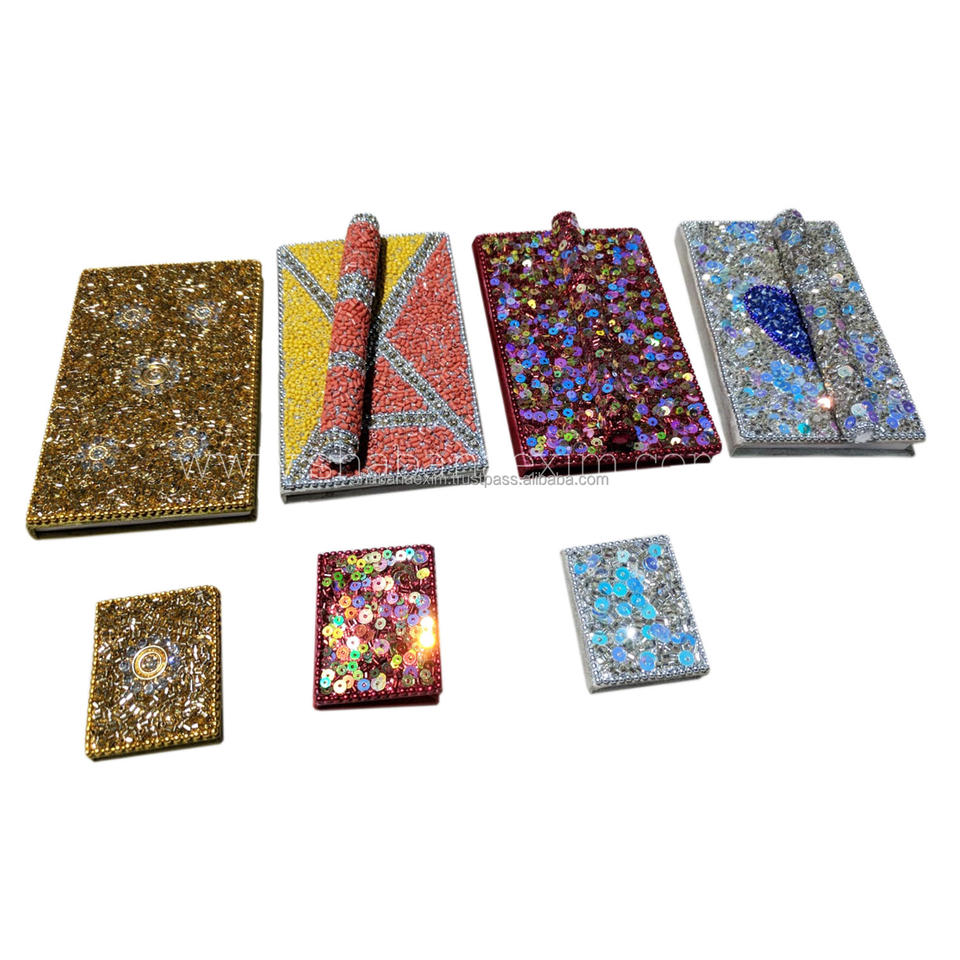 สมุดบันทึกตกแต่งลายกลิตเตอร์พร้อมปากกา งานแฮนด์เมดจากอินเดีย สำหรับผู้หญิงและนักเรียน สมุดบันทึกประดับลูกปัดหลากหลายสไตล์