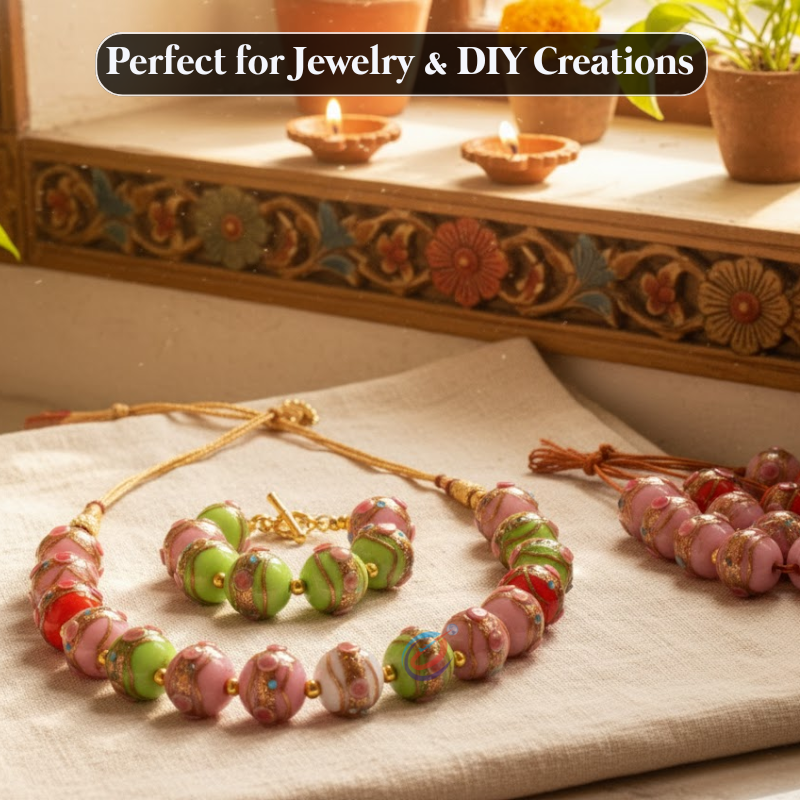 ลูกปัดแก้วลายประดับตกแต่งแบบแฮนด์เมด ความยาว 8 นิ้ว | ลูกปัดหลากสีขนาด 16 มม. ทำมือสำหรับงานฝีมือและอุปกรณ์ DIY