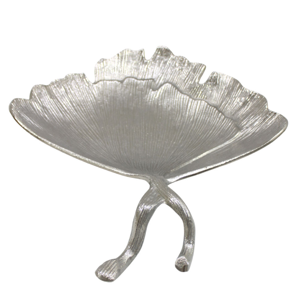 Decorative Leaf Aluminum Cast Shiny Silver Shiny Gold Nickel Plated Handmade Classic Design Serving Tray High Quality Durable