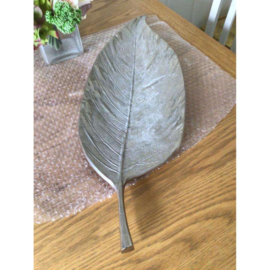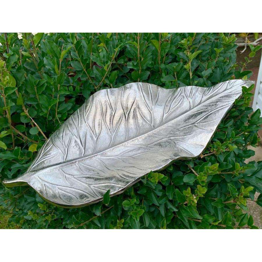 ถาดใบไม้ตกแต่งสำหรับเสิร์ฟขนมขบเคี้ยว ถั่ว จานโลหะสีเงิน งานฝีมือโลหะ ถาดสวยงามสำหรับงานอีเว้นท์