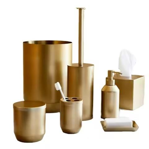ชุดอุปกรณ์ห้องน้ำโลหะหรูหราพร้อมที่วางแปรงสีฟันและถาดสบู่