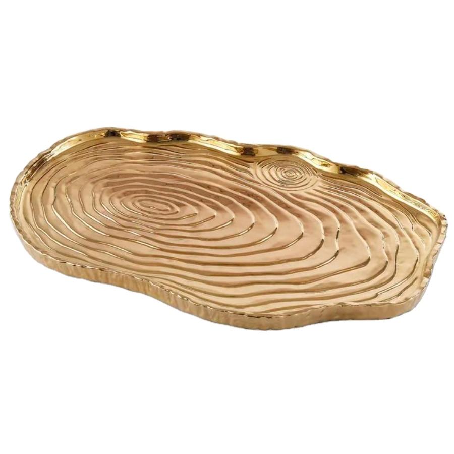 ถาดตกแต่งหรูหราและจานใส่ผลไม้ ถาดโชว์เค้กสีทอง งานฝีมือโลหะ สำหรับงานแต่งงาน อุปกรณ์ตกแต่งโต๊ะ จานเสิร์ฟ