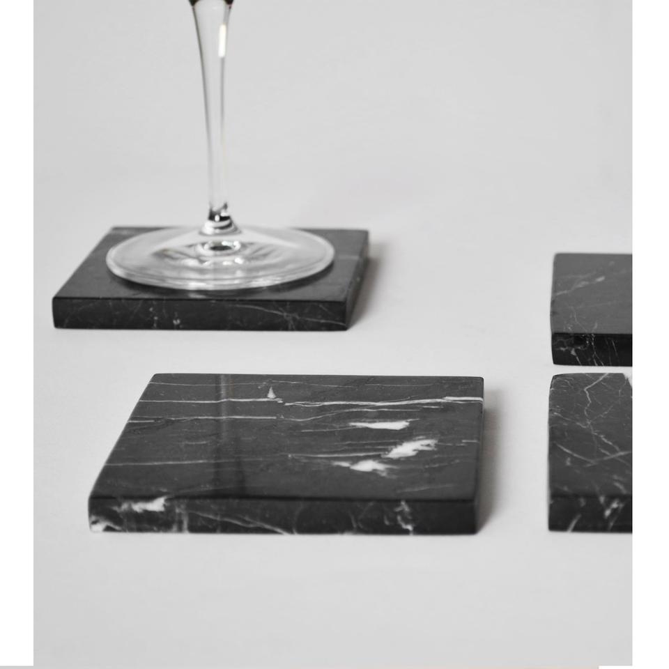 จานรองแก้วทรงกลมหินอ่อนตกแต่งจานรองแก้วสีดำธรรมชาติกันลื่นอุปกรณ์ครัว