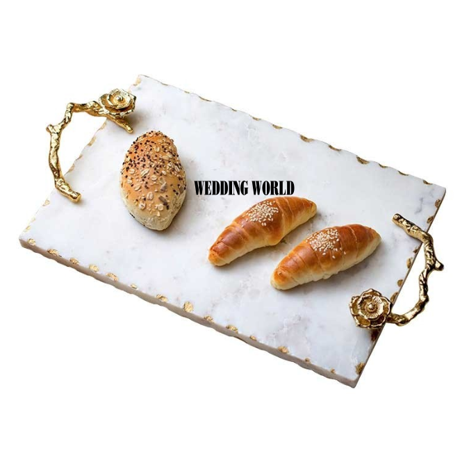 ถาดเสิร์ฟหินอ่อนตกแต่งคุณภาพสูงทําด้วยมือออกแบบจานคลาสสิกสไตล์ขายส่งใหม่แฟนซีถาดเสิร์ฟหินอ่อน