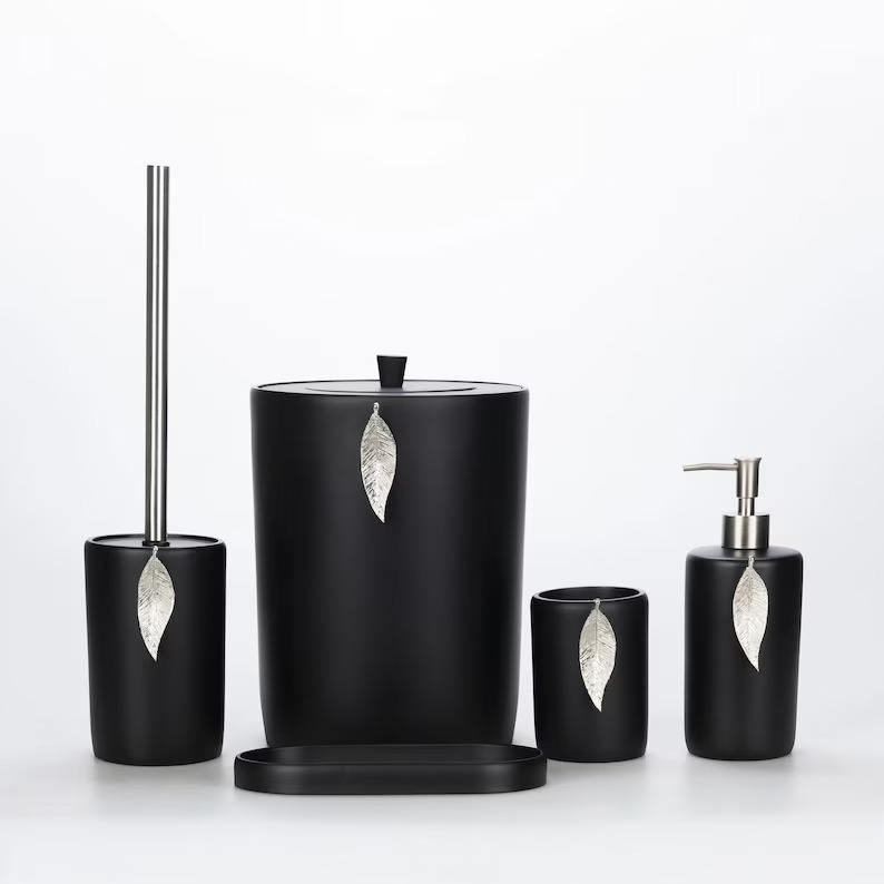 ชุดอุปกรณ์ตกแต่งห้องน้ำโลหะ ที่ใส่กระดาษทิชชู่ ที่จ่ายสบู่เหลว ที่วางแปรงสีฟัน ถังขยะ