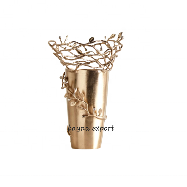 ตกแต่งโลหะใบสาขาการออกแบบหัตถกรรมแจกันดอกไม้โลหะคอลเลกชันใหม่ของเราหรูหราตารางตกแต่งแจกันดอกไม้โลหะ