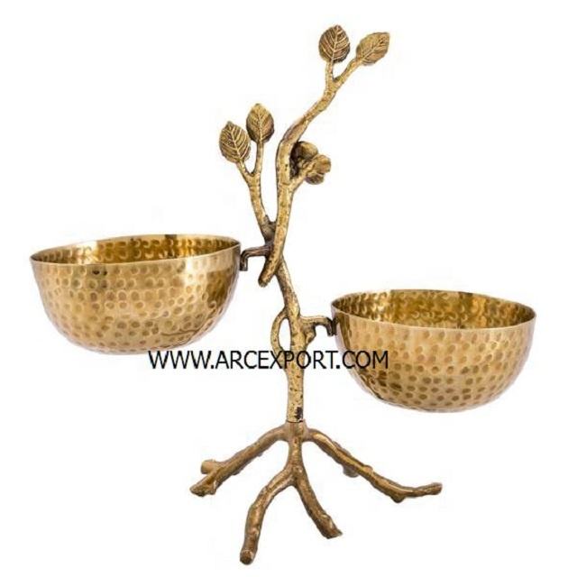 ชามเสิร์ฟโลหะตกแต่งสีทองเคลือบเงา งานแฮนด์เมด ดีไซน์ลายใบไม้ 4 ชั้น สำหรับใส่ช็อกโกแลต