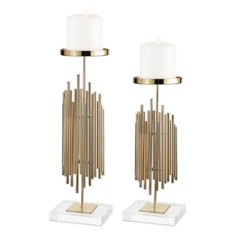 ชุดที่ใส่เทียนตกแต่งทำจากโลหะ2ชิ้นโคมไฟประดับโต๊ะสำหรับงานแต่งงานในบ้านในห้องนั่งเล่น
