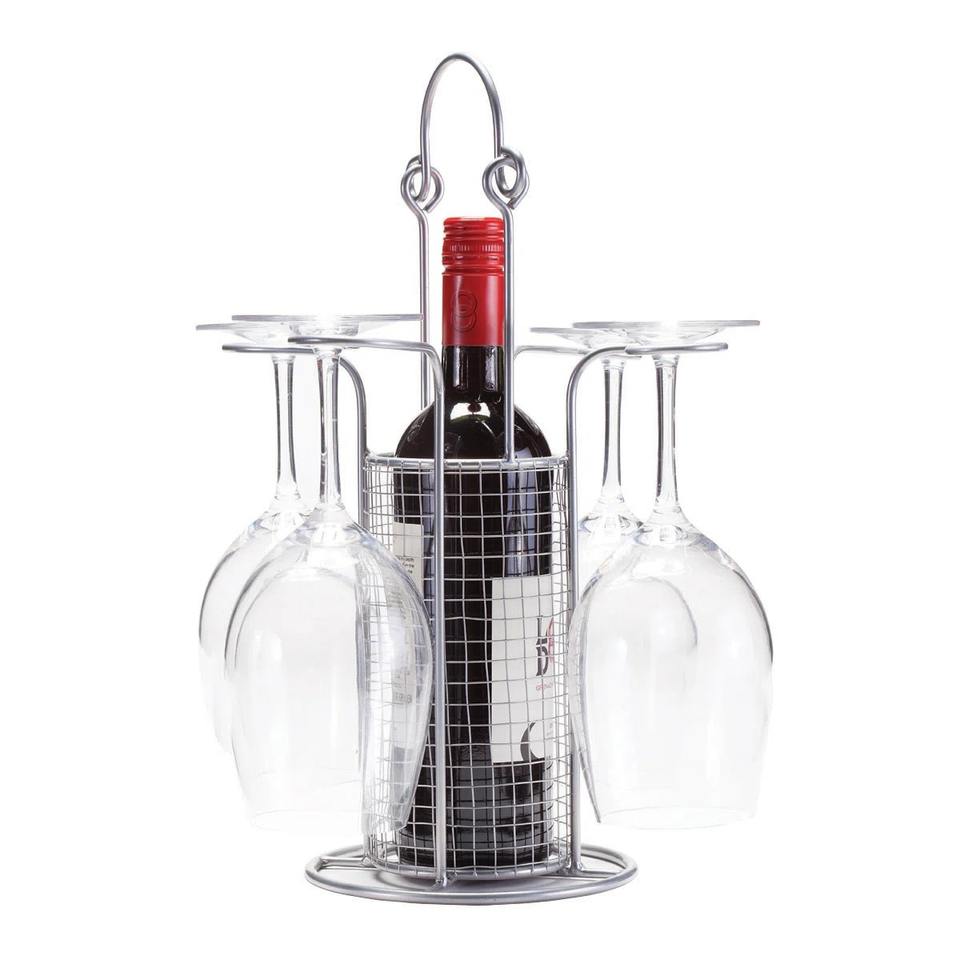 ที่วางขวดไวน์เหล็กตกแต่งสไตล์โมเดิร์น พร้อมที่แขวนแก้ว 4 ใบในตัว ความจุ 3 ลิตร พร้อมหูหิ้ว