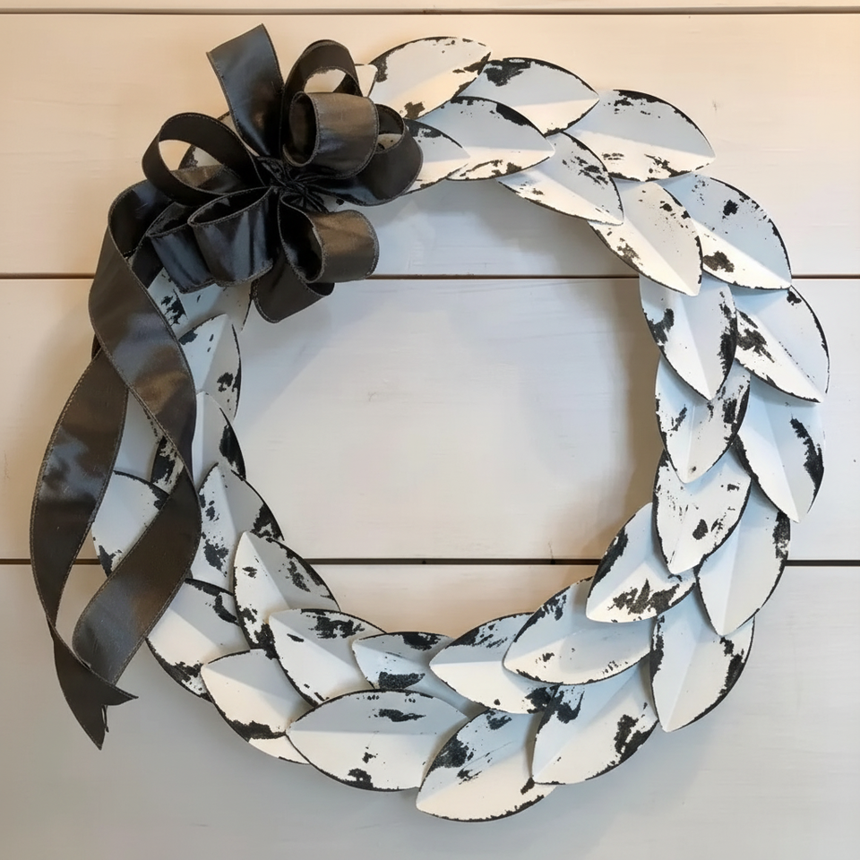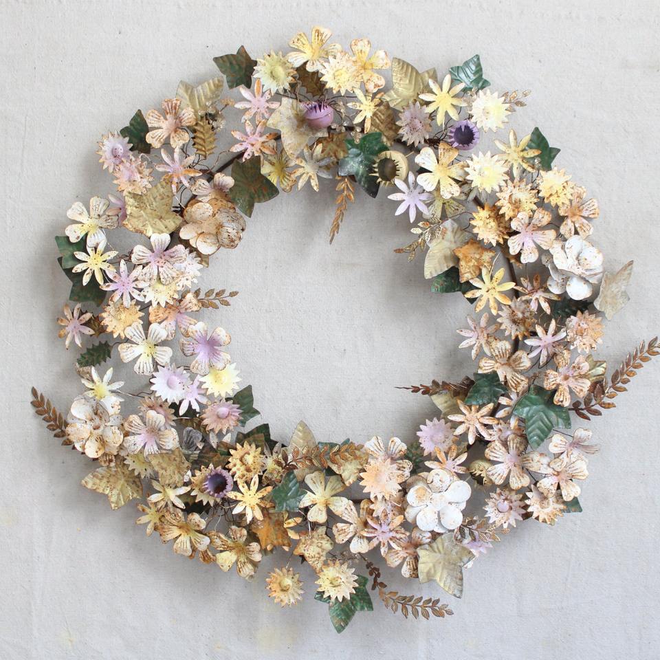 พวงหรีดโลหะตกแต่งผนังทรงกลมทำด้วยมือสำหรับแขวนประตูตกแต่งบ้านในร่มกลางแจ้ง