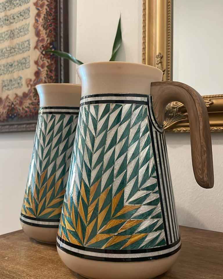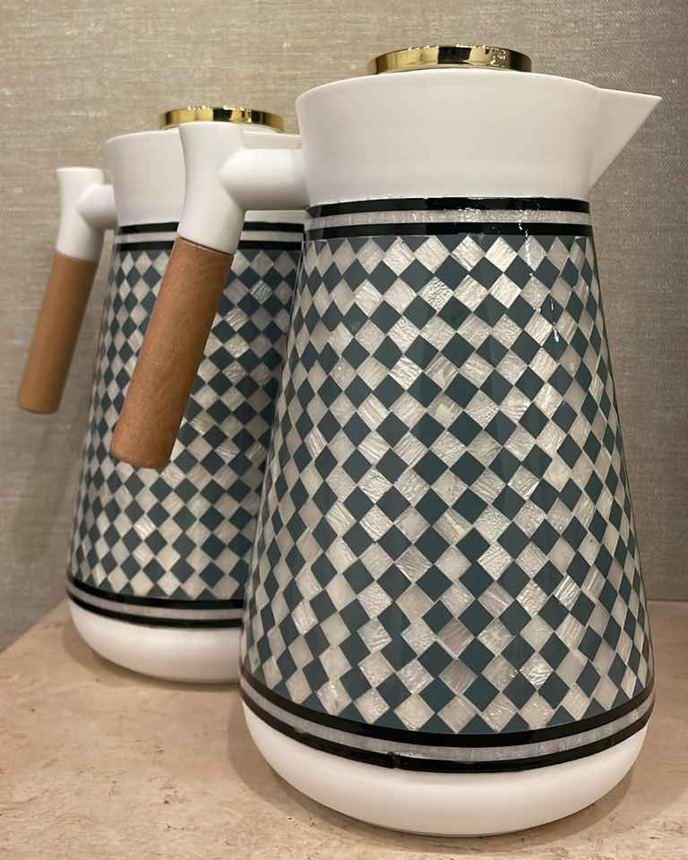 กาน้ำชาประดับมุกพร้อมหูจับ เป็นมิตรกับสิ่งแวดล้อม แบบดั้งเดิมของอาหรับ สำหรับเป็นของขวัญในเทศกาลอีดและรอมฎอน