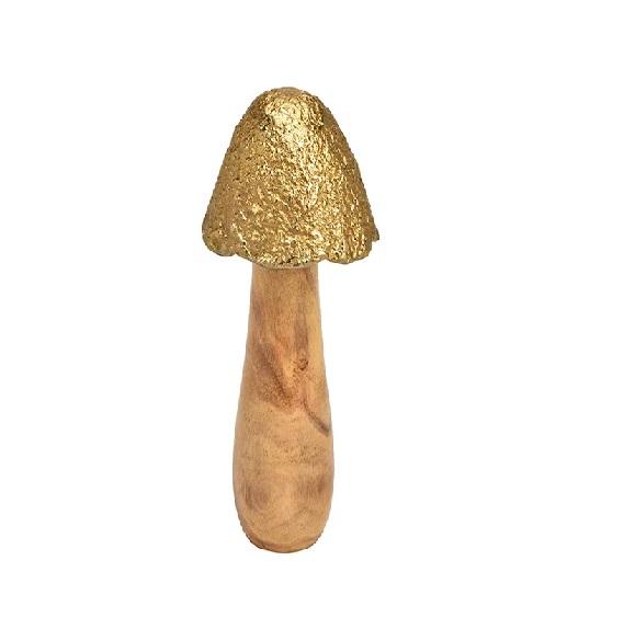 เห็ดตกแต่งพร้อมหัวเห็ดโลหะเงินด้ามจับไม้มะม่วงขนาดสูงและน้ำตาลเงิน10x22x10cm สูง