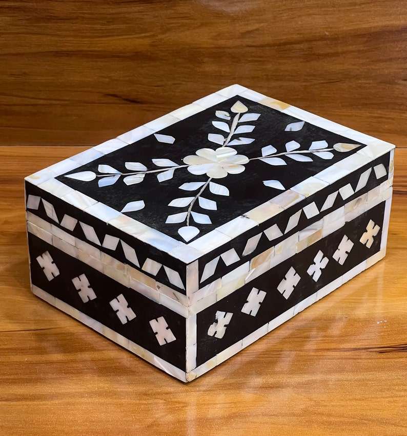 กล่องฝังกระดูกสีดำและสีขาวทำด้วยมืออุปกรณ์จัดระเบียบสำหรับตกแต่งเครื่องประดับโต๊ะดีไซน์ดอกไม้